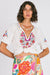 - Custom folk style embroidery at sleeves and bust