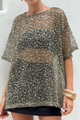 Bring the sparkle, keep it chill. This oversized short-sleeve top is all about effortless shine — cream open-knit mesh with subtle beige sequins gives major see-through vibes without trying too hard. Pull it on, layer it, or wear it solo...