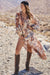 The Volcano Goddess Gown in Coconut radiates playful elegance with a touch of bohemian charm. Made from 100% organic cotton crinkle, its custom Spell allover print adds a signature flair. Featuring a front button opening, adjustable neck and waist ties, elastic cuffs, and delicate sleeve frill details, this gown embraces effortless beauty and feminine freedom—perfect for awakening your inner goddess with every wear.