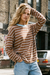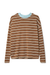 The warm chocolate base is complemented by fresh baby blue stripes, creating a timeless yet contemporary look. With its relaxed oversized silhouette, this piece is designed for easy layering and everyday wear, making it a reliable go-to throughout the seasons.