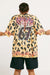 This standard cut tee drips with nostalgia: think vintage gig-poster graphics, leopard print for days, and a lick of flames because… why the hell not?