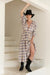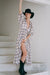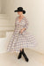 With a plunging V-neckline and chic shell buttons down to the hips, a removeable waist tie to cinch in all the right places, two tiers of luscious, flowy fabric, flirty tassel ties at the neck, and three-quarter elasticated sleeves that hit just right — drama without the fuss.