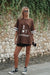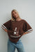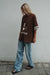 The Champagne Tee - featuring a brown coloured base, ribbing on the sleeves and front print.